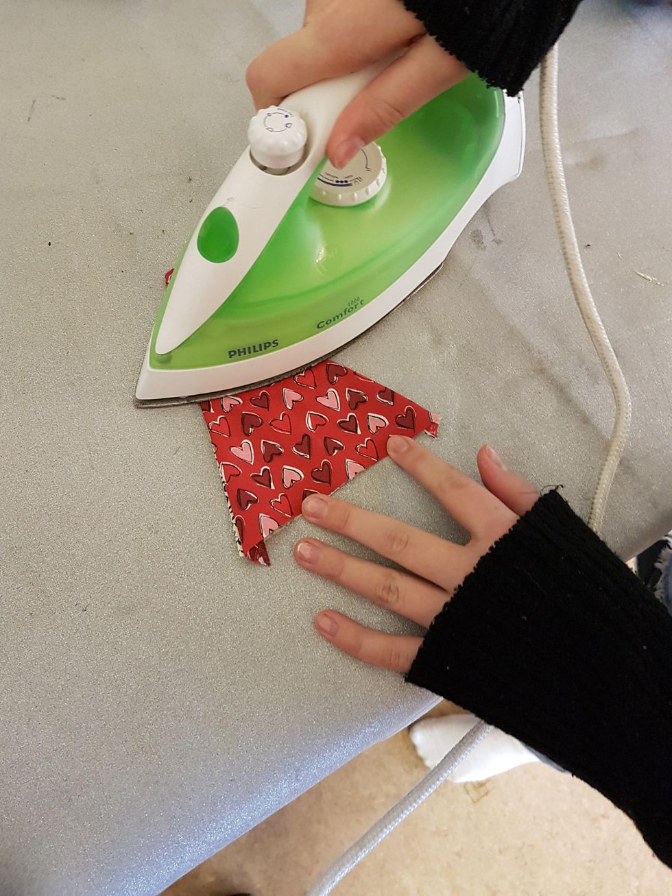 Ta fram tyget du vill ha på andra sidan. Lägg din tygbit i kanten, nåla fast och klipp ut.