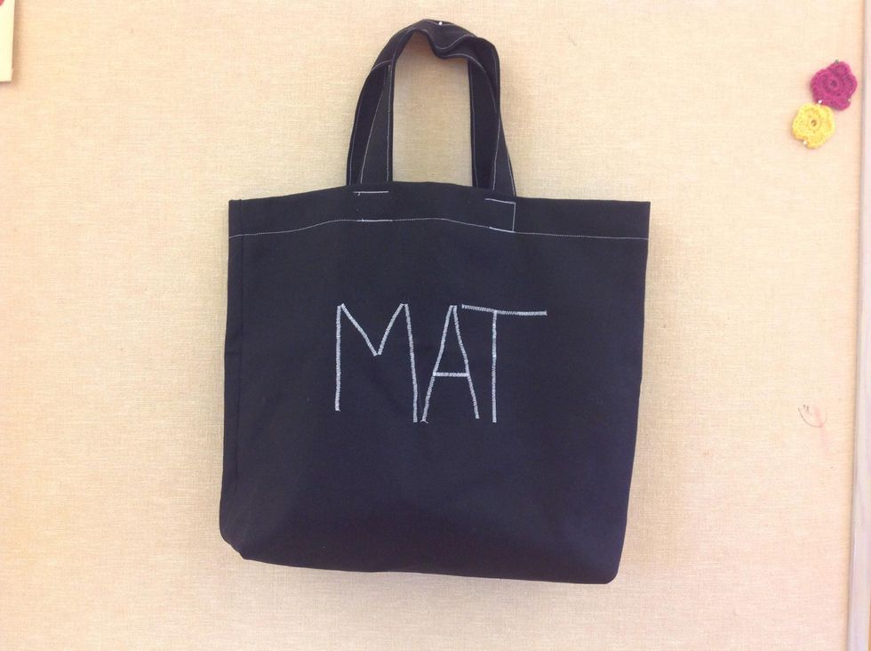 Vik den stora tygbiten för att se var du ska sätta din dekoration. Du kan göra en applikation, maskinbroderi, måla med textilpennor eller liknande.