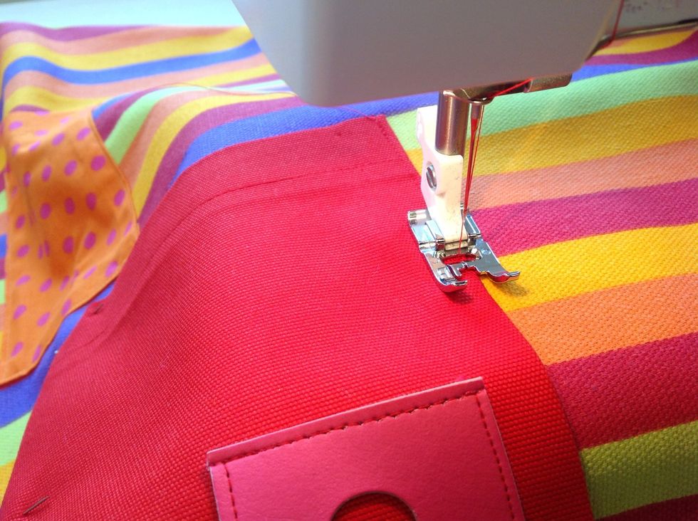 Sy fast med raksöm, låt ytterkanten på pressarfoten följa sicksack-kanten.