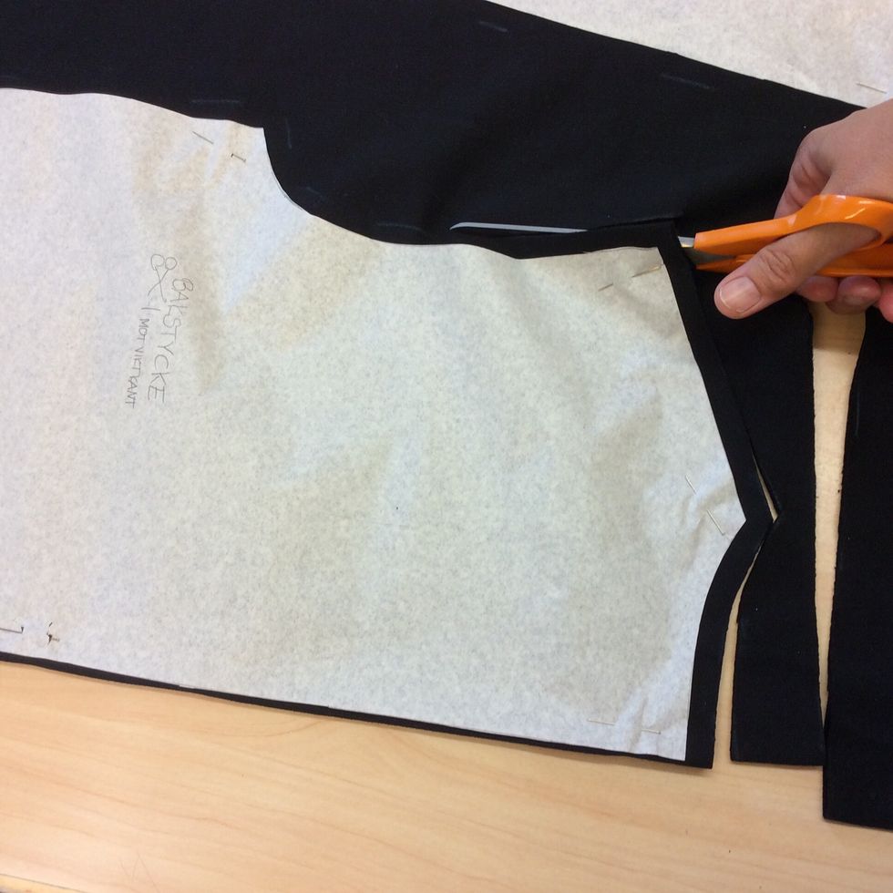 Innan du tar av mönsterpappret så klipp ett jack (2-3mm) precis där du tejpat uppe på ärmkullen.