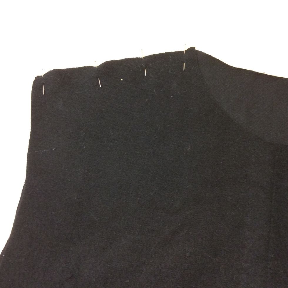 Vik halsringningen på tröjan så att axelsömmarna möter varandra. Sätt en nål på varje sida i vinkningen som bilden visar.