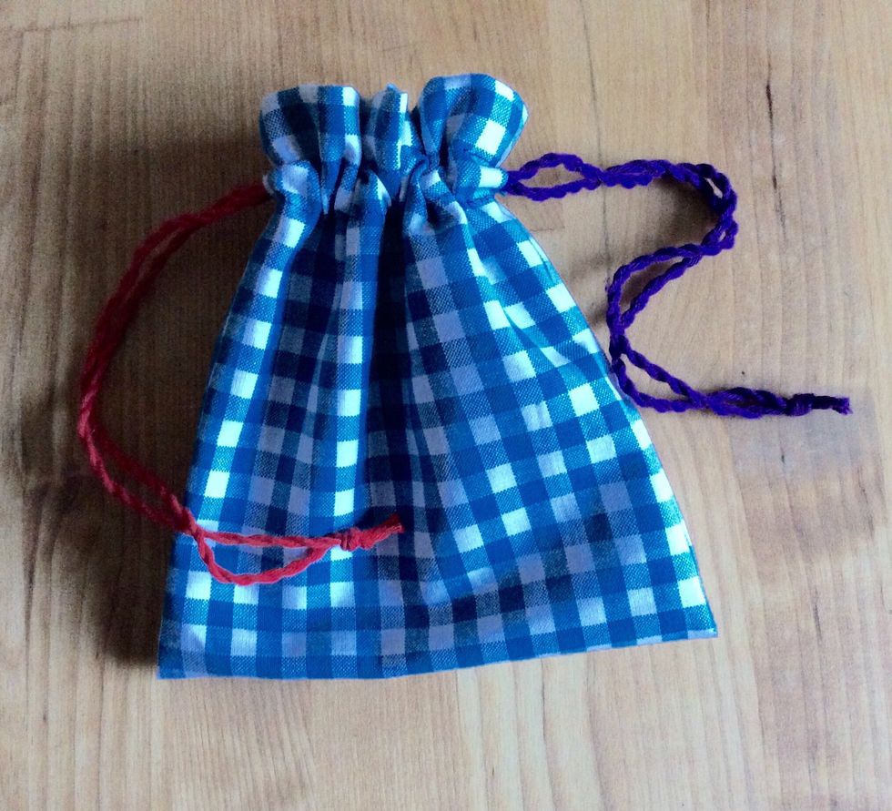 Dra ihop påsen med snoddarna och den är klar. Dekorera gärna med textilpennor eller liknande.