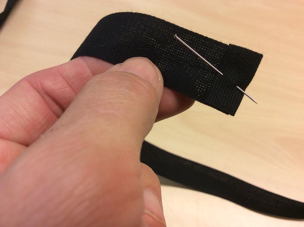 Om du vill kunna justera bandet runt halsen behöver du ett band som är 10 cm. Du behöver även knäppet.