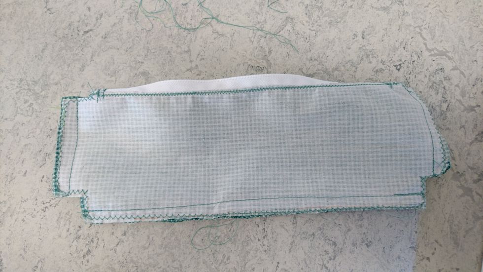 Sy kortsidorna, långsidorna och fäst i början och slutet.