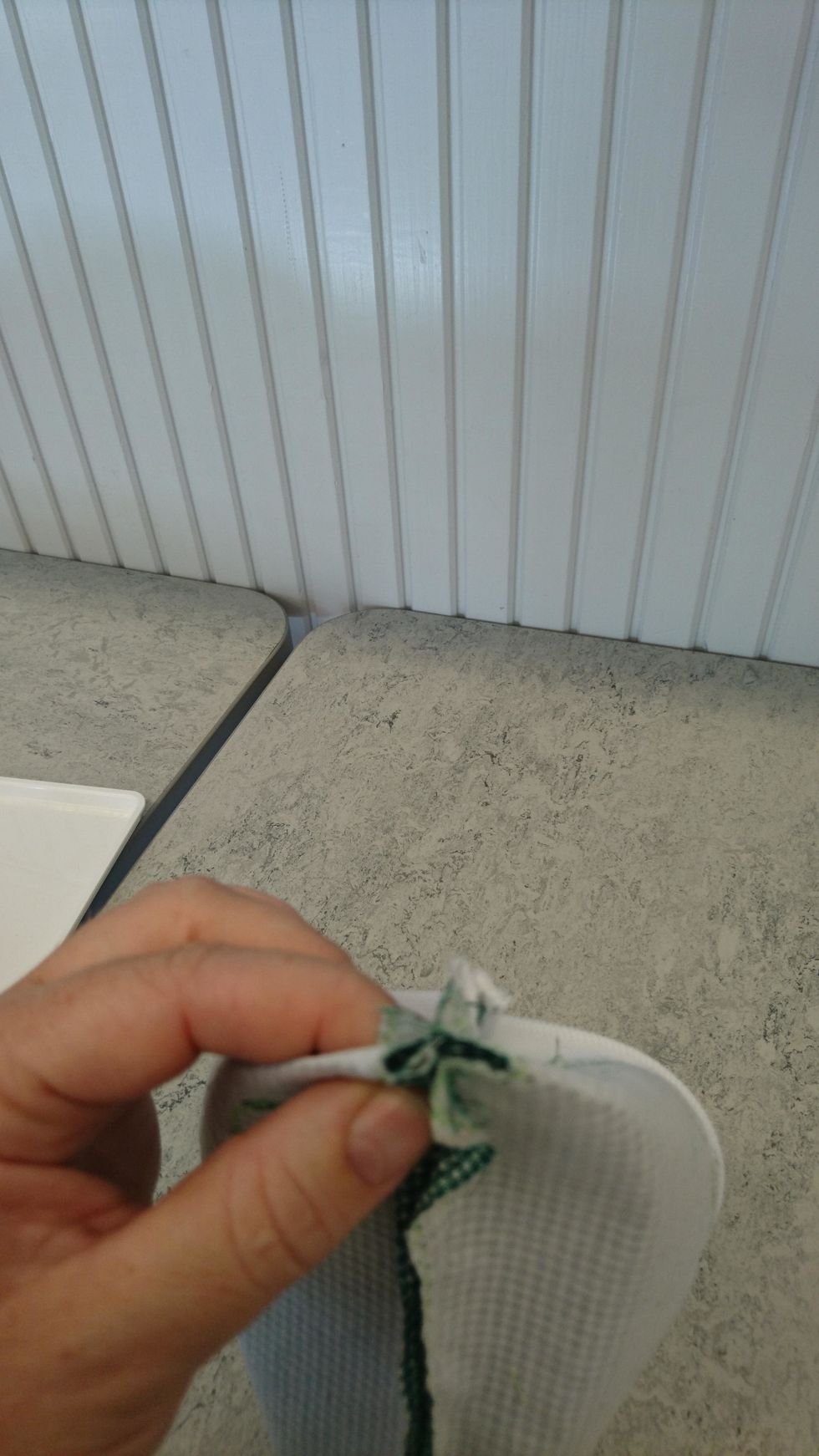 Nåla inte i hörnen, där ska du inte sy ännu.