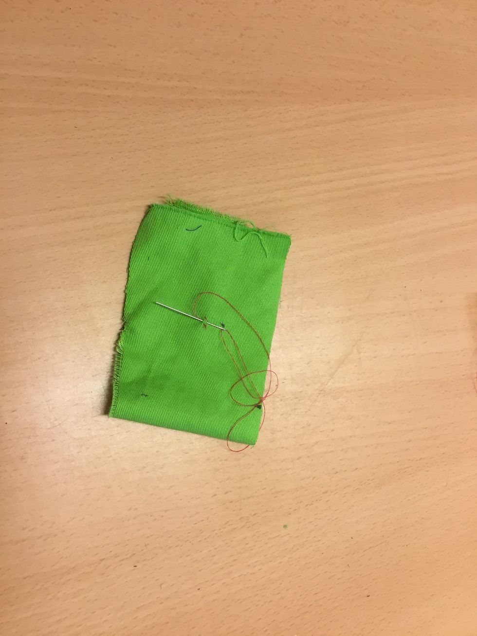 När du har sytt fyra gånger genom hålen på knappen är det dags att FÄSTA (sy fast) tråden. Sy fyra små stygn på undersidan. Klart!