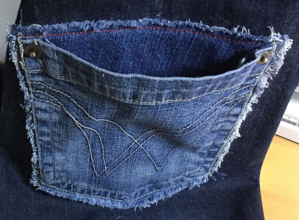 Klipp ut fickan med ungefär 2 cm sömsmån. Du behöver inte vara så noggran.