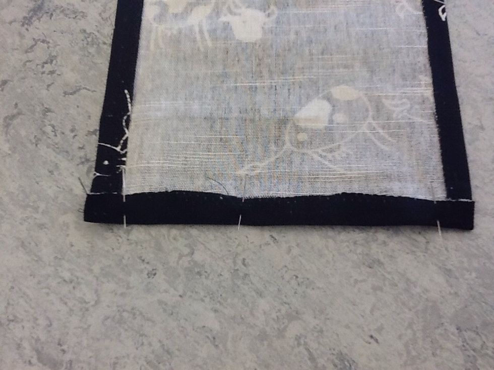 Vik ner 1 c m på kortsidorna. Stryk och nåla.