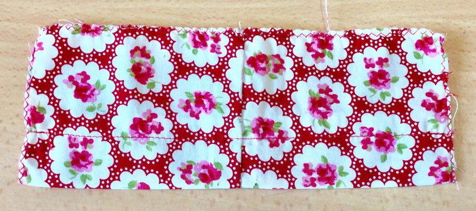 6. Sy ihop den sidan du har tvärnålat med raksöm och 1 cm sömsmån. Var noga med att backa i början och i slutet för att fästa tråden!