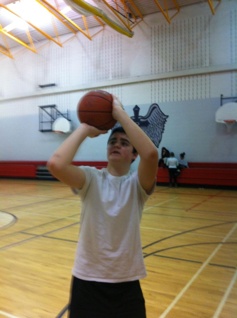 Shooting: To shoot the ball extend your elbows and knees simultaneously. As you are releasing the ball flick your wrist and push towards the net. This will put back spin on the ball.
