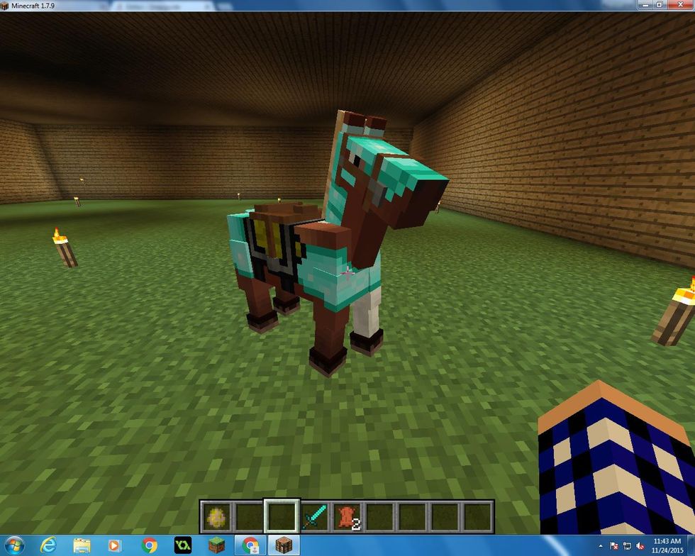 Now you have your horse! :) Also with the armour you can pick to put on gold, iron, or diamond. I just chose diamond. But to get on right click and to get off press shift. Hope you enjoy!