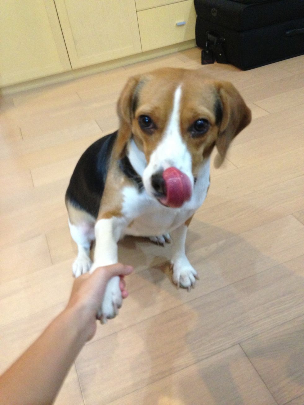 Do this and shake her/his paw like you would to a human. Say good and give him/her a treat. Repeat, sooner or later your dog will understand