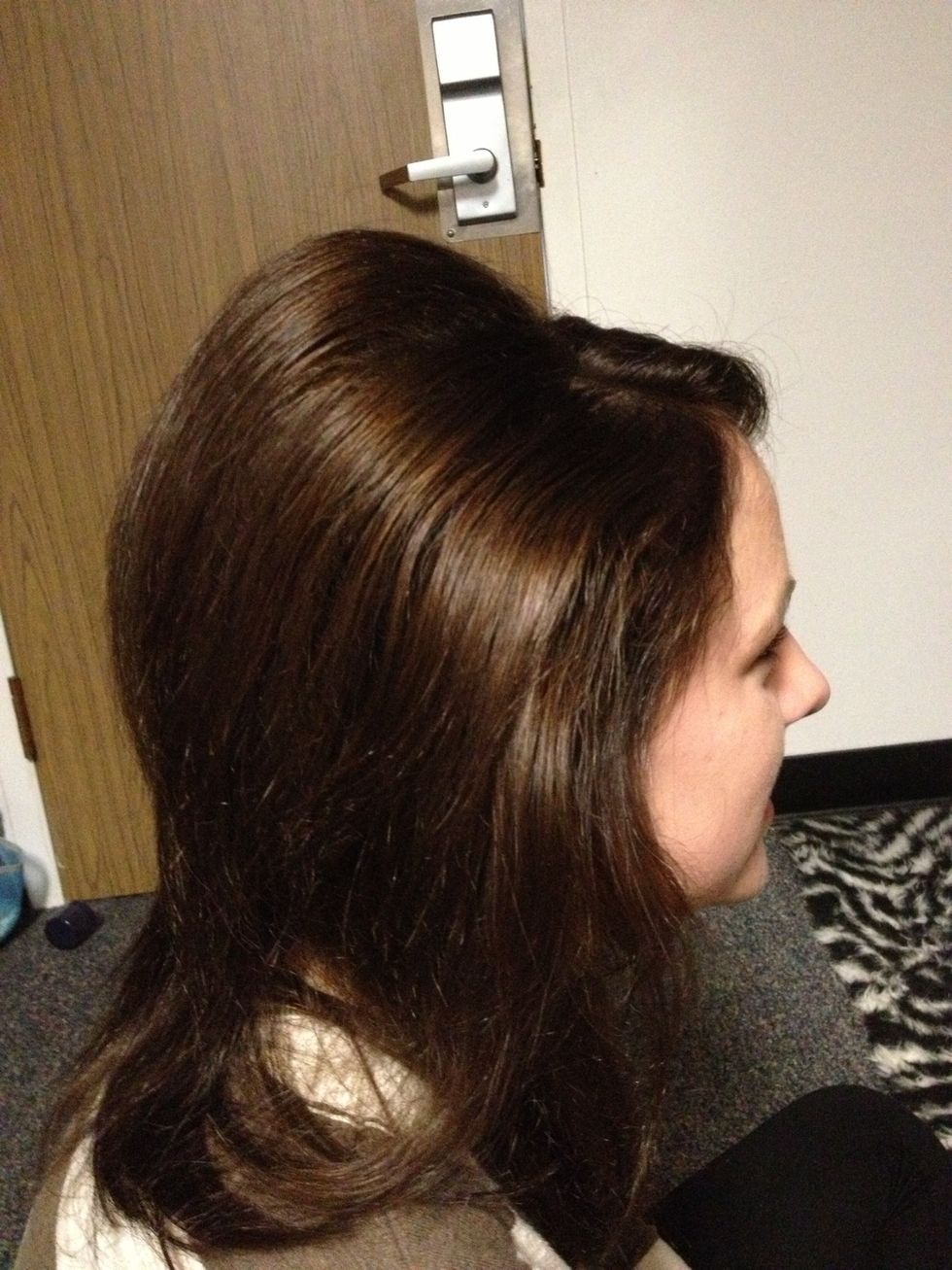 Hairspray but only a little NOT TOO MUCH onto the bottom part of the hair!