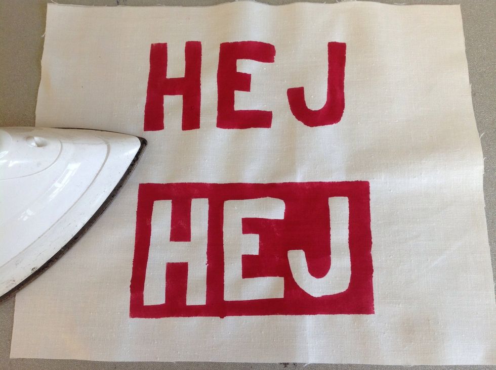 När färgen torkat ska du fixera den med strykjärn. Läs på textilfärgen hur länge och vilken värme du ska använda.