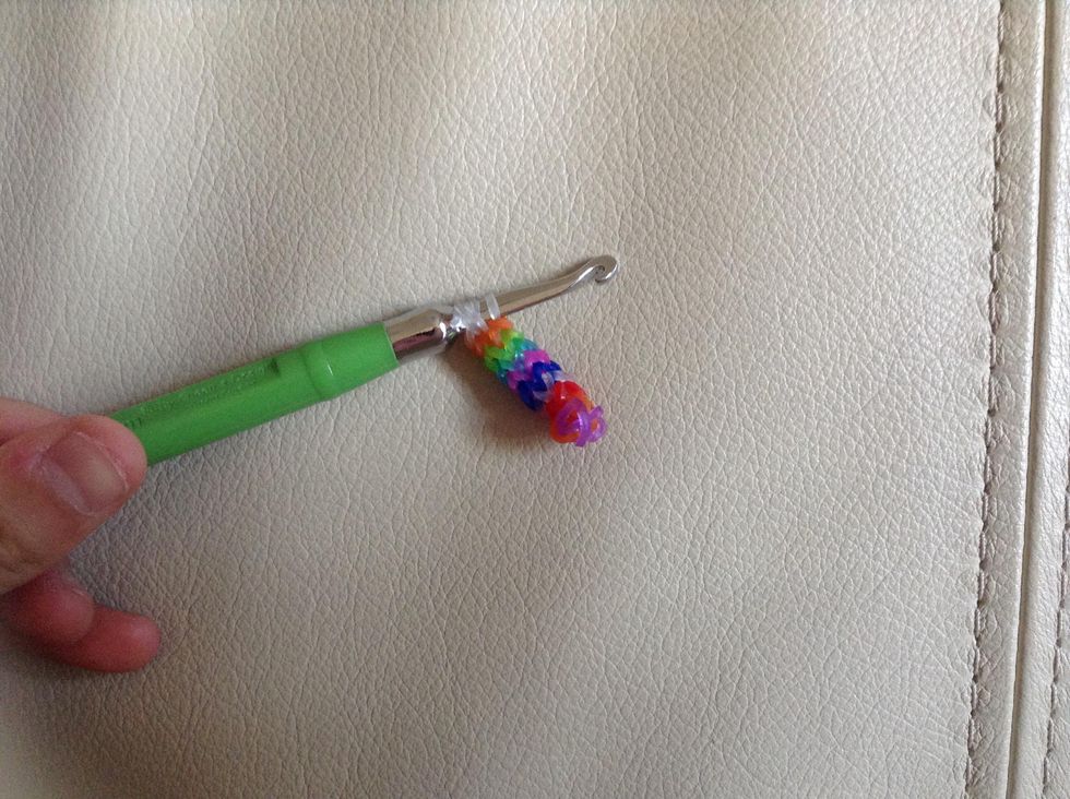 What it looks likeAdd a diamond rubberband on top, so it looks like thisHookAnother diamondDiamondHooked!Keep repeating till you get the length you want!Thanks for reading/watching!!! Leave a like, comment, or follow me!