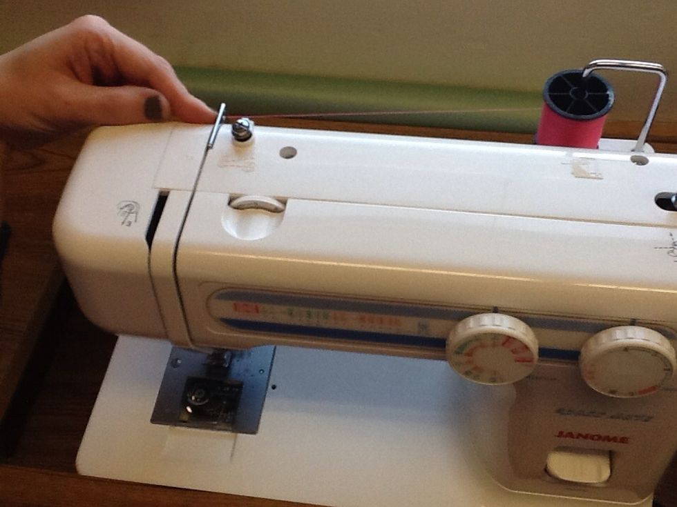 Bring the thread to the second thread guide. Follow the arrows down and then back up to #3.
