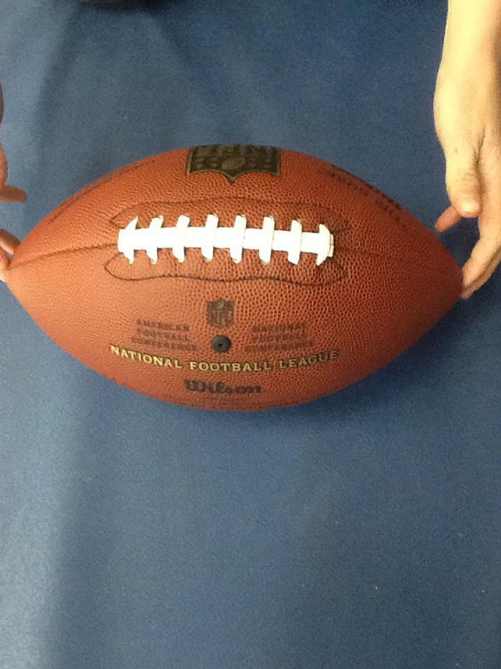 Step forward if you have the football in your left hand step forward with the right foot.(opposite hand opposite foot)