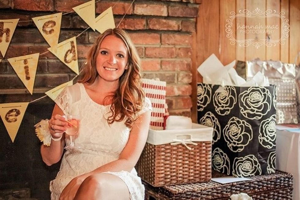 The canvas on the fireplace was done at Walmart in one hour. It was gifted to the bride after the shower. The banner was made using scrapbook paper.