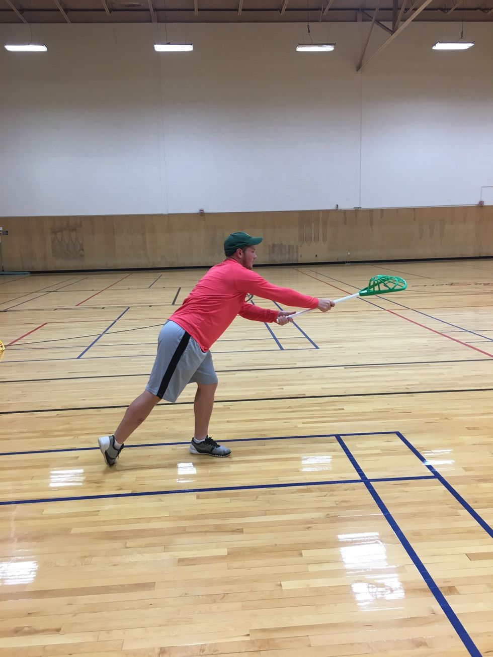 Start with shoulders pointing to the target. Two hands on stick dominant hand on top about six inches from the head