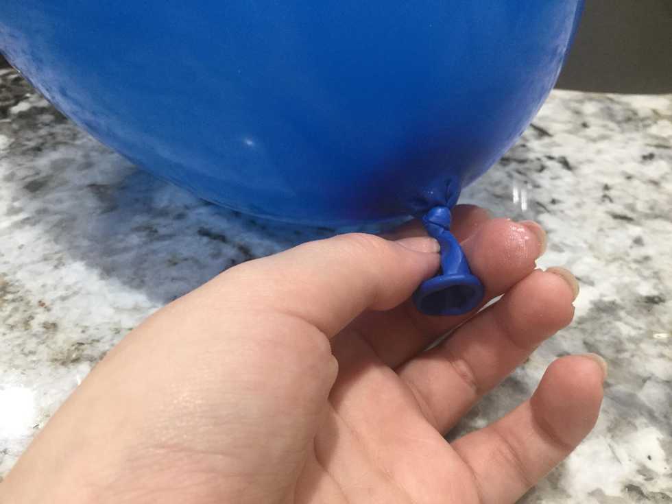 First put 2 fingers onto the part of the balloon while stretching the mouth of the balloon.