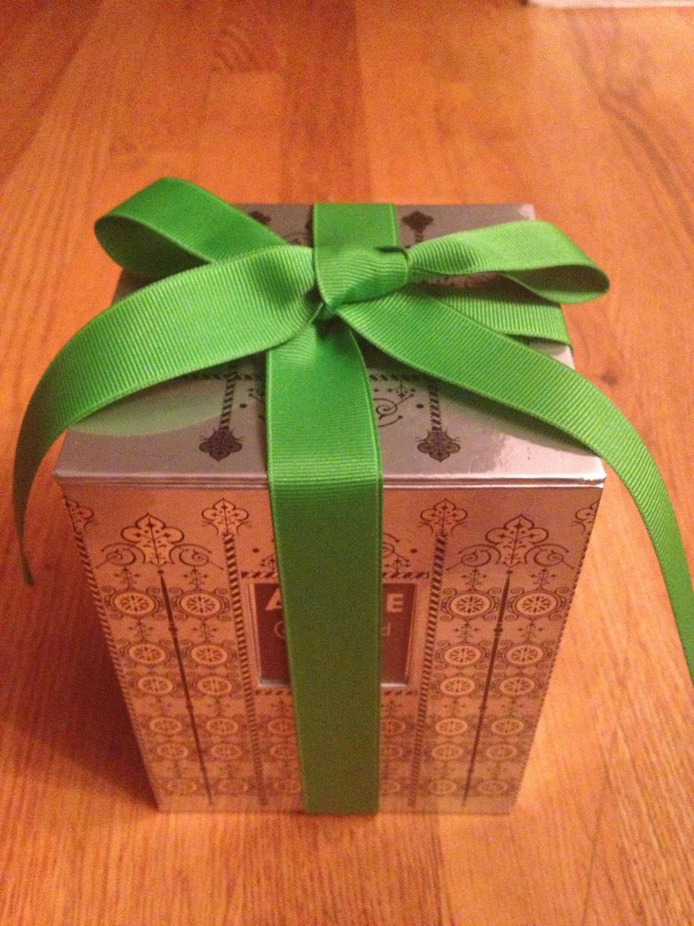 Wrap the tail end of the ribbon around the box once again and this is now what the top of the box should like.