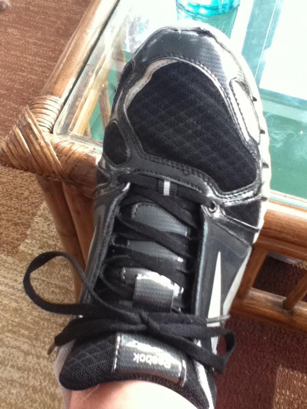 Hold the laces so the right one is hanging forward and the left one is hanging backwards.