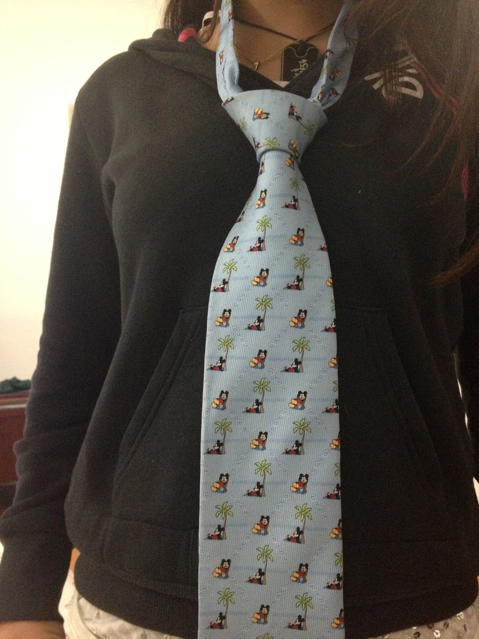 So First you put the tie around your neck una way that the fatest side is at you right and is longer than the thinner side