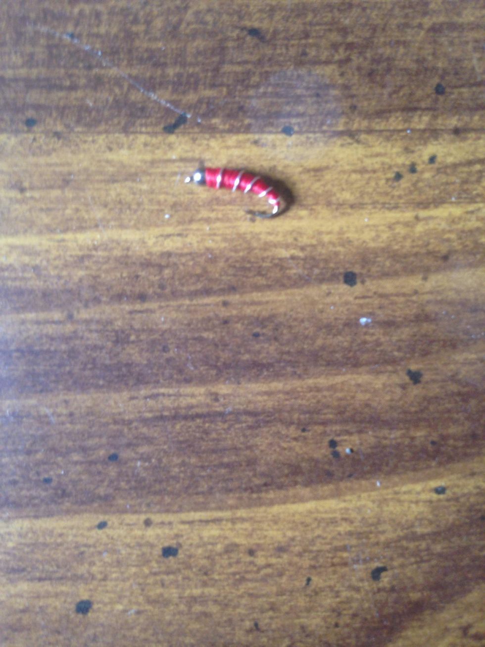 Materials needed: -Vise -Dai-Riki #285 size 20 hooks -5/64" cyclops bead heads - 2/0 red thread -silver fly tying wire - scissors