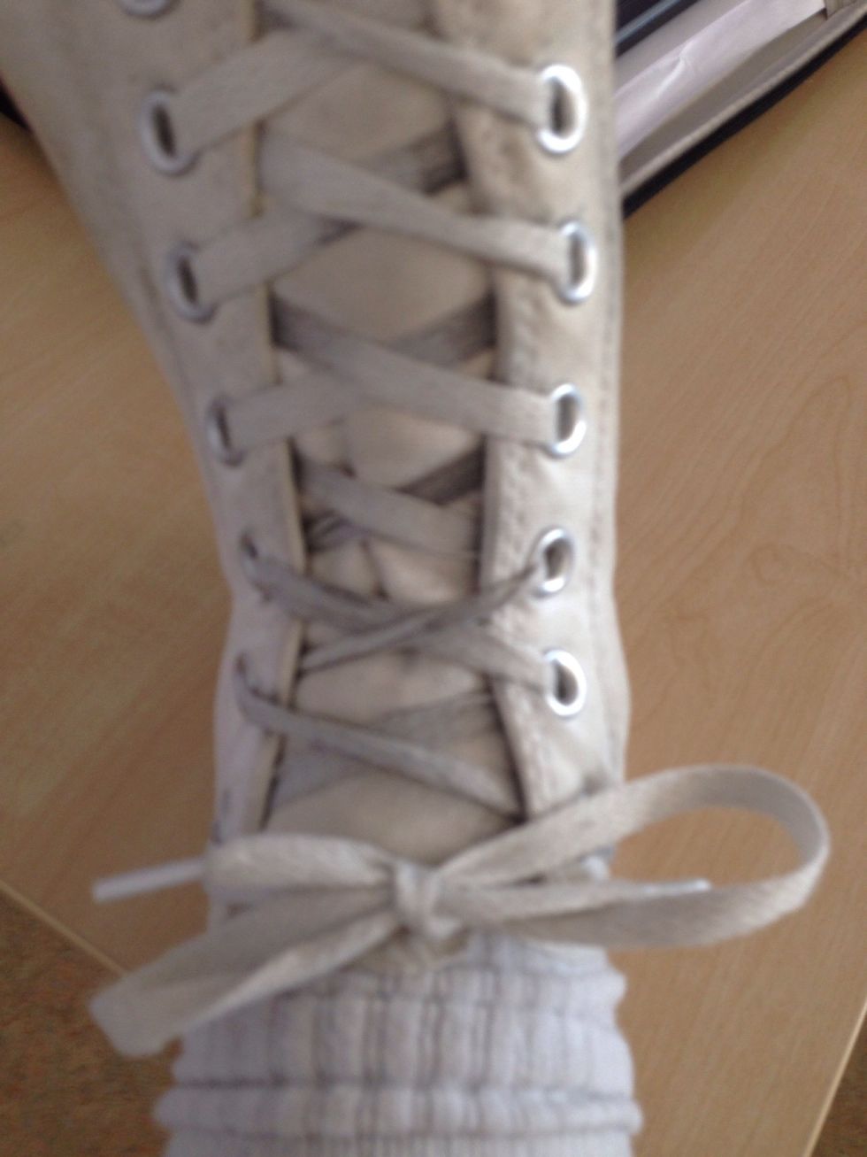 If your shoelaces are long, you might want to wrap them around your leg one lap, but if they are not, then you can just skip this step