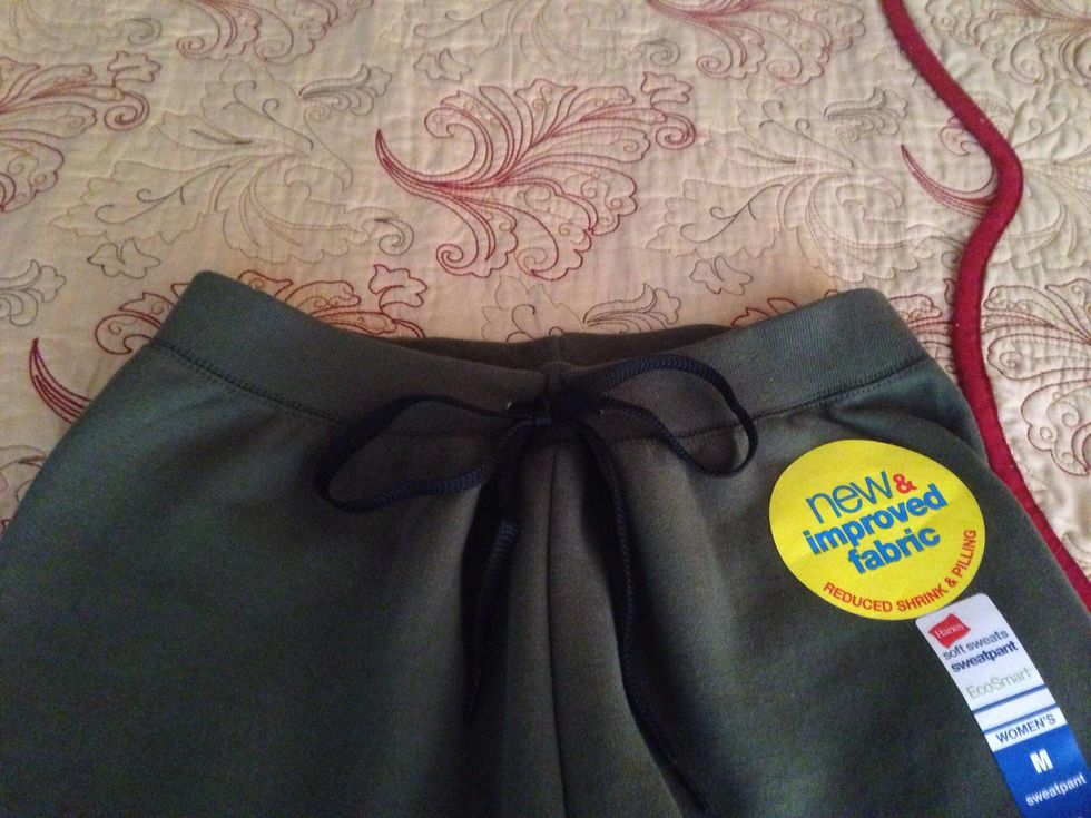 We'll thread this shoe string through the front of the waistband to create a cinched look.