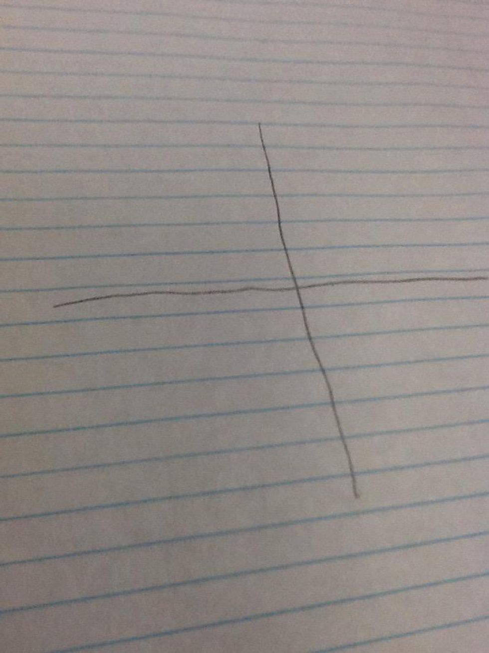 Here comes the hard part, now draw a vertical line that crosses the first line