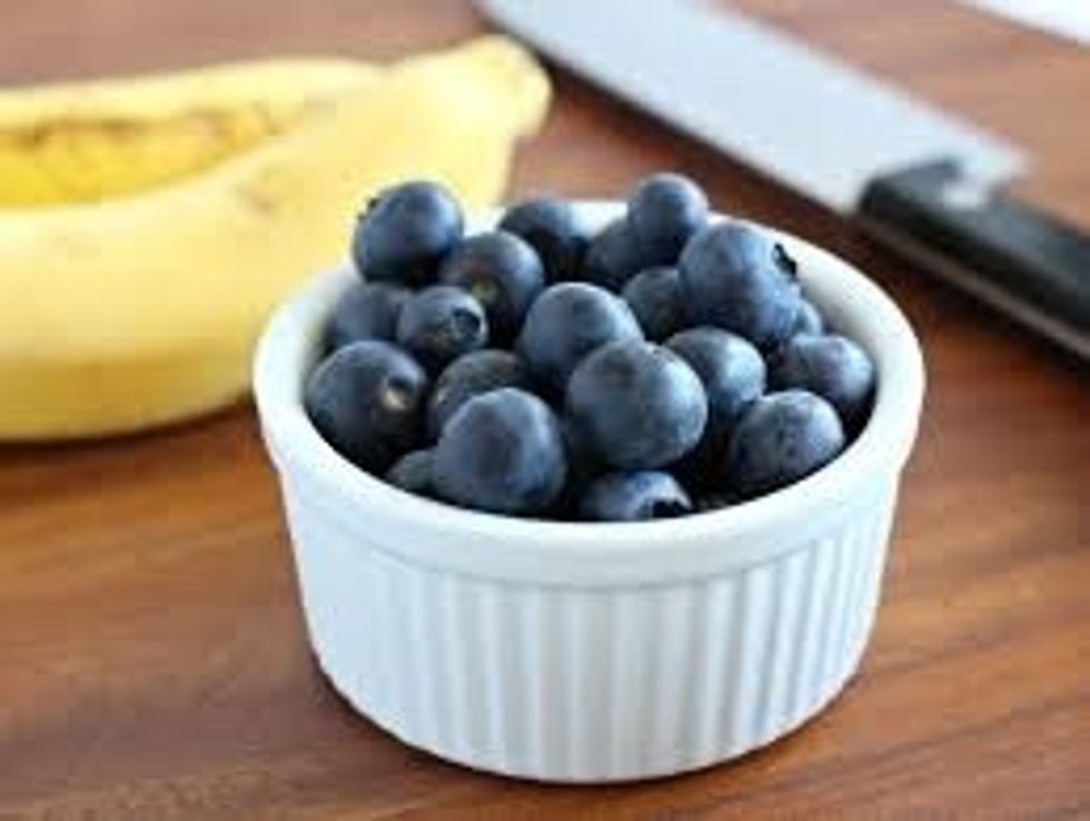 Blend it together and add the blueberries and ice cubes