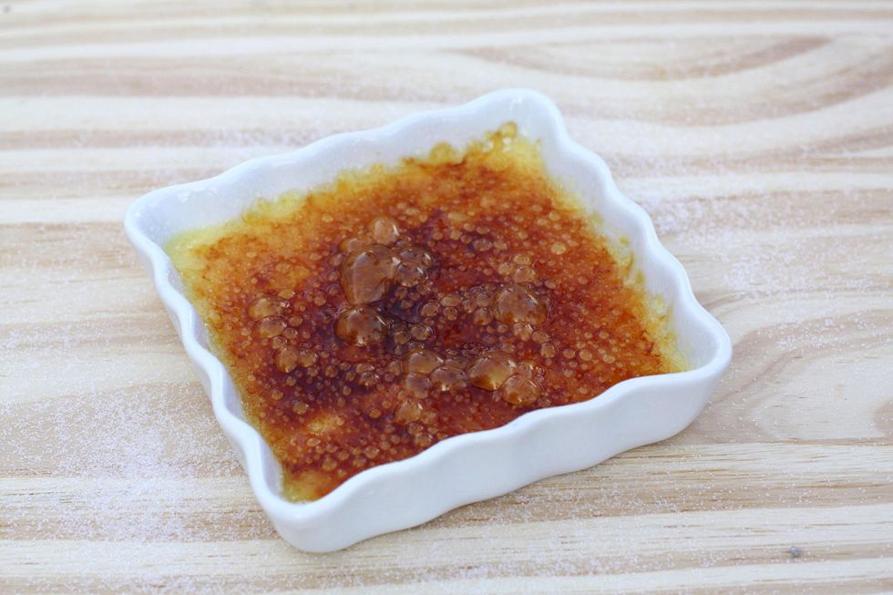Begin with chilled crème brûlée already prepared in heat-safe dishes. This is a perfect dessert to make ahead of time. Simply torch at the last minute to serve.