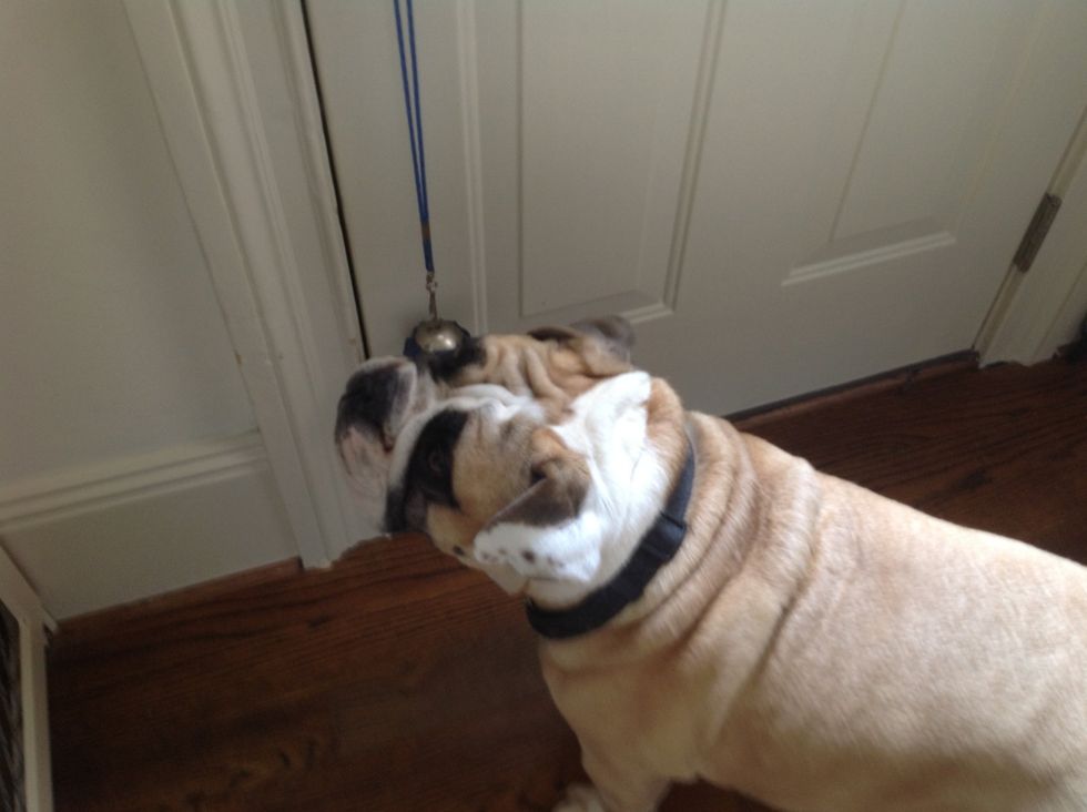 It makes life so easy when your dog can let you know when he/she needs to be let out. I trained our English Bulldog as a puppy, but any age dog can be trained easily. Hope this video helps!