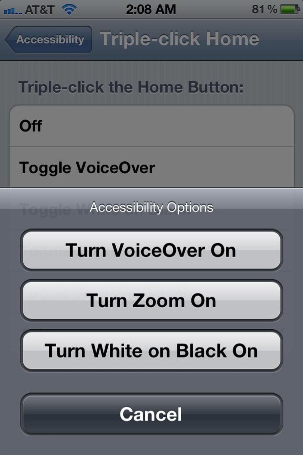 Once you have set your preference, all you have to do is hit your home button three times! This triple click is the "ask" feature and when tripled clicked brings up this list, easy access!