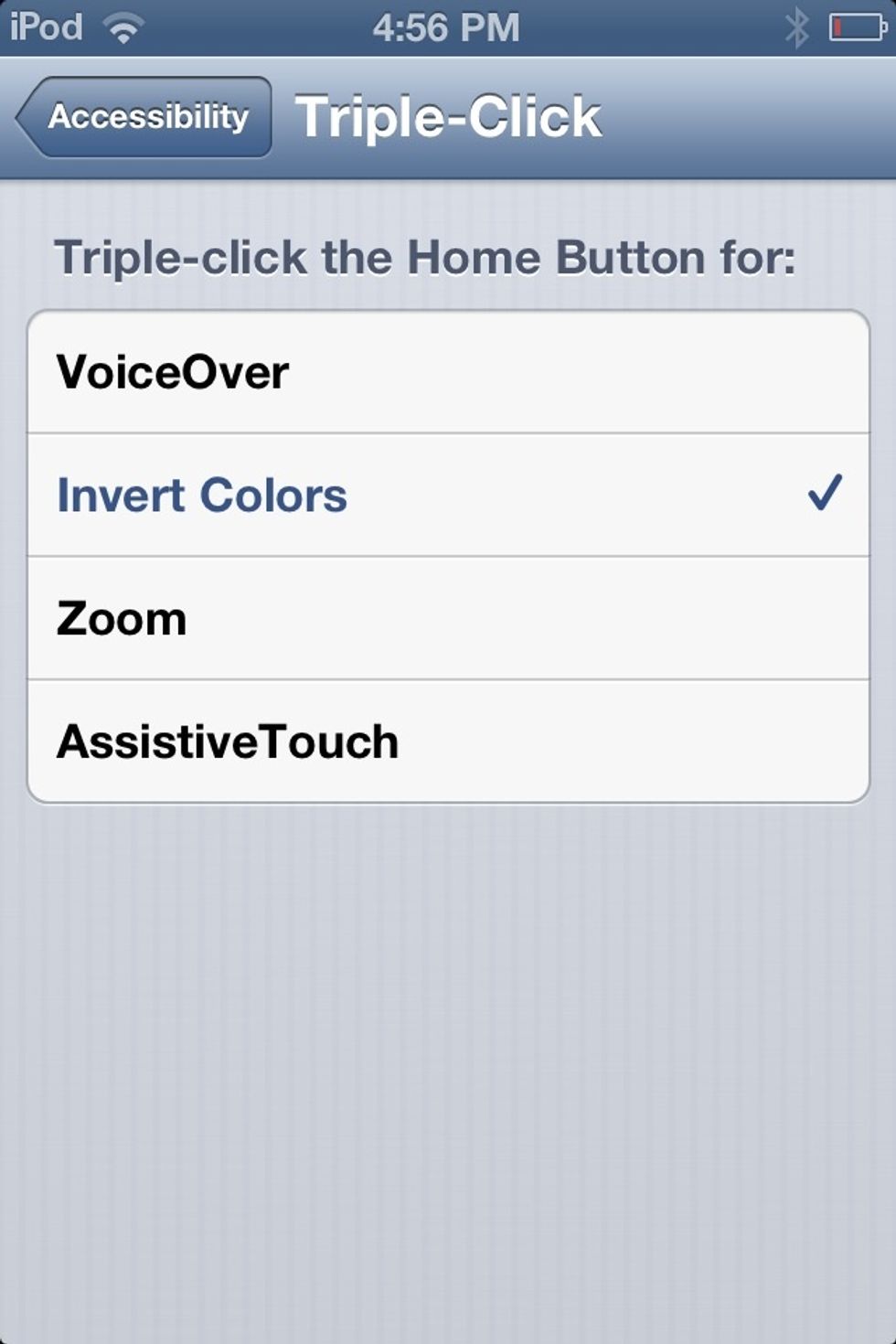 Scroll all the way down to the bottom and tap Triple-click (double tap the picture if you need to see what it looks like).