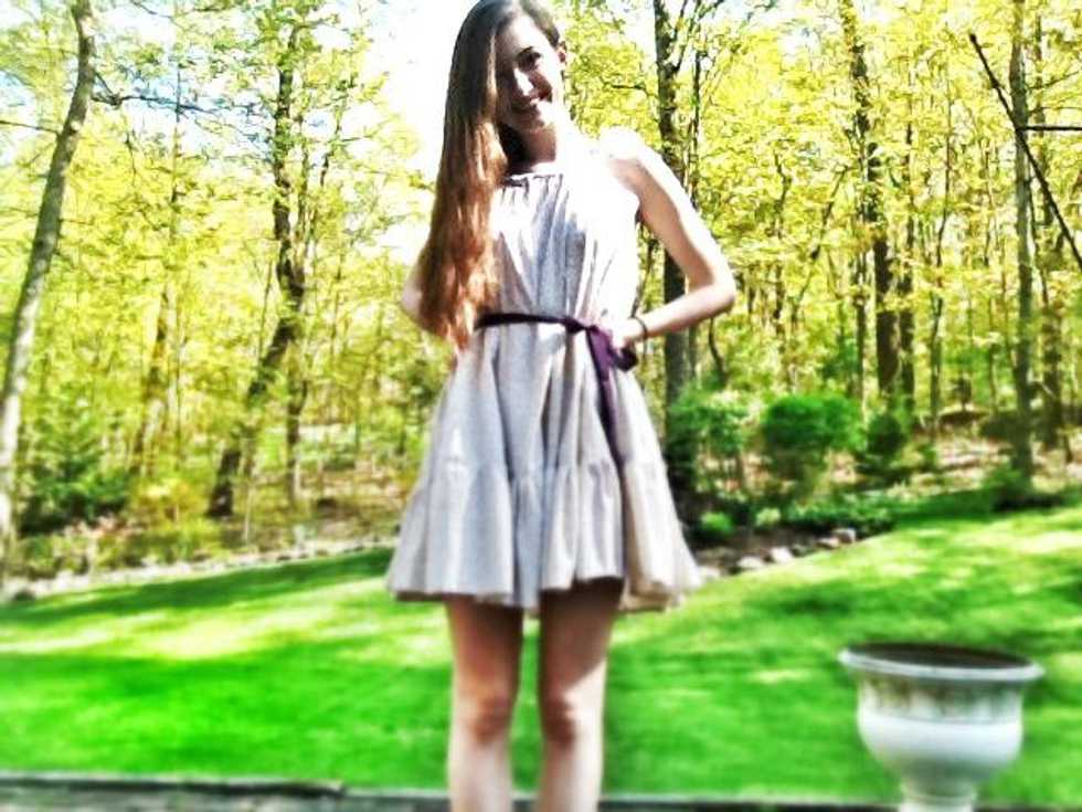 Congratulations! You now have a dress! I tied a purple ribbon around the waist as a belt but I didn't sew it on so I can wear other belts if I want.
