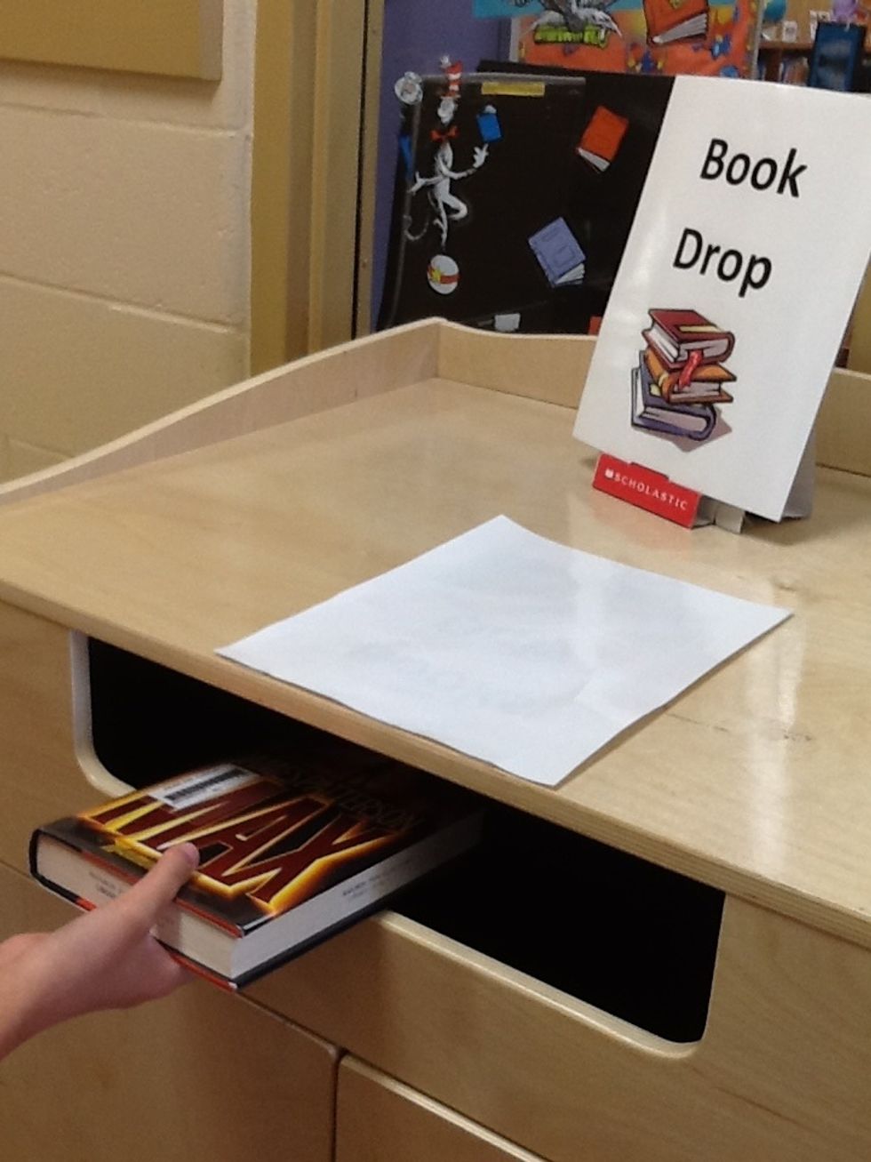 After that, find the book drop that is next to the door. It has two signs on it that says Book Drop and Books Only.