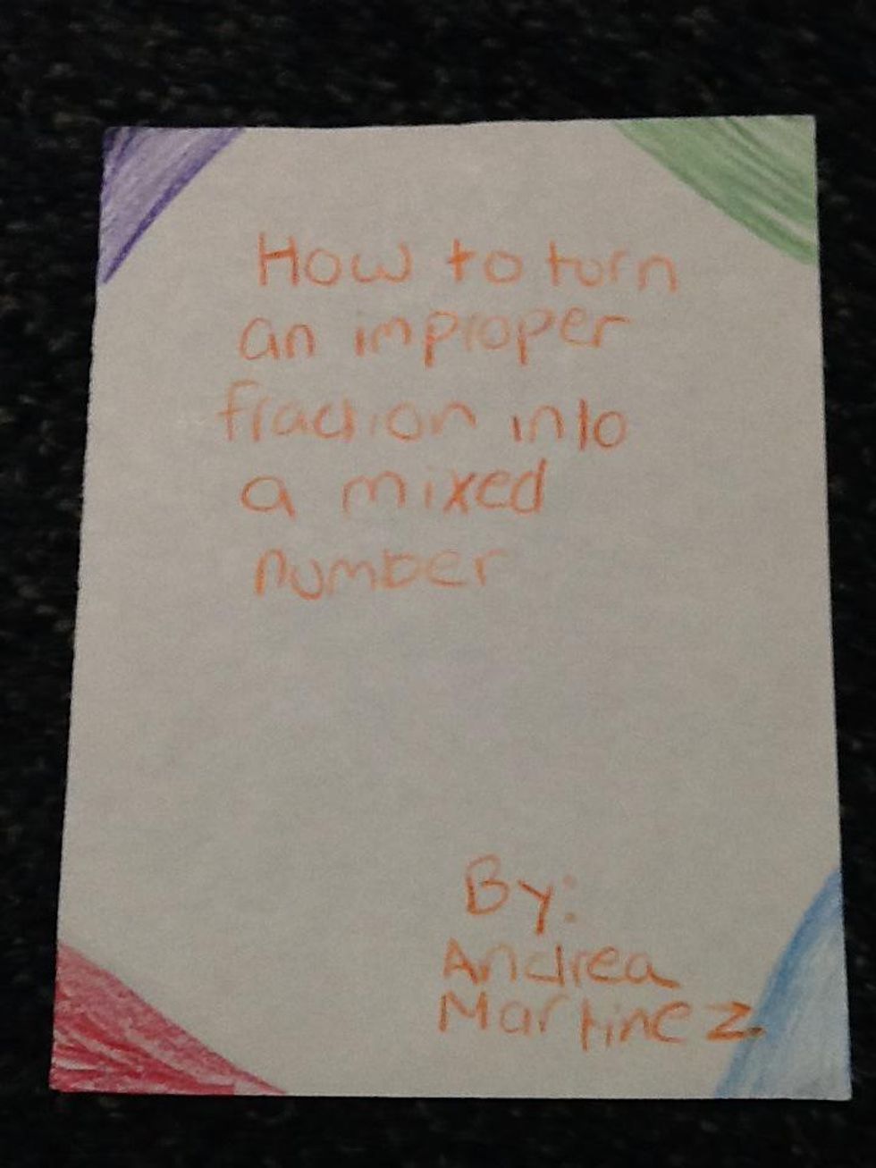 First , make sure your numerator is bigger than your denominator, making it an improper fraction!