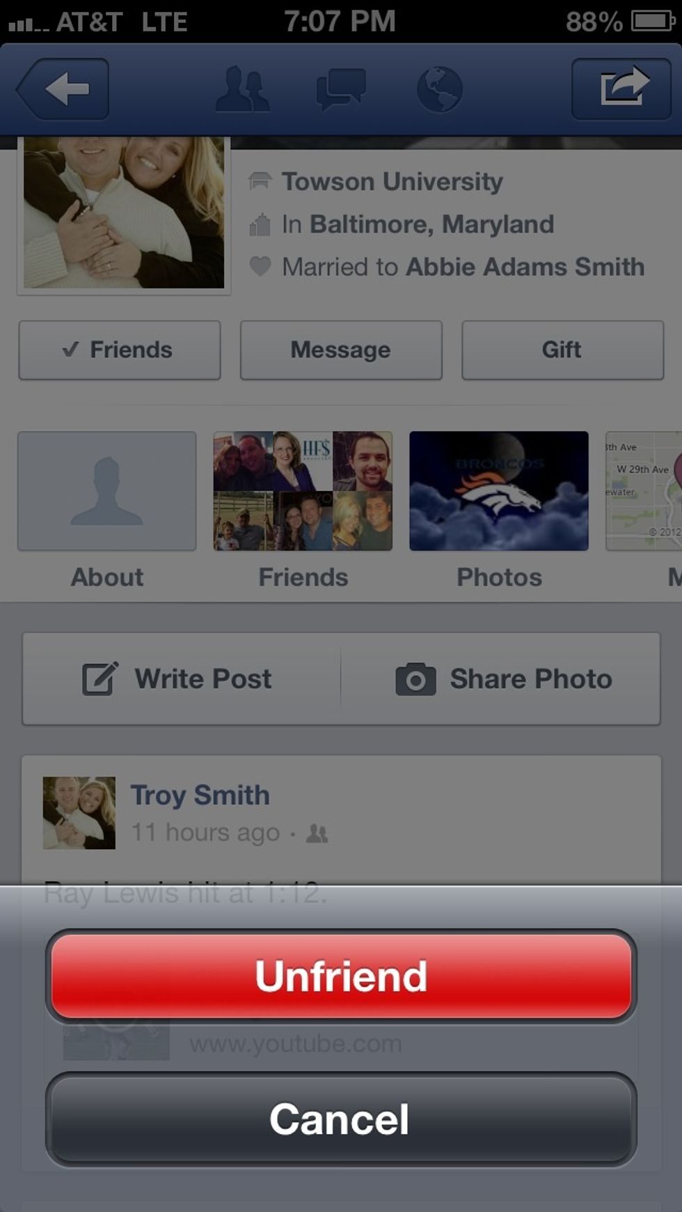 Finally - click UNfriend and...BOOM, now you don't have to see their posts or pictures! (For the record, this friend was an example and will be not be deleted)