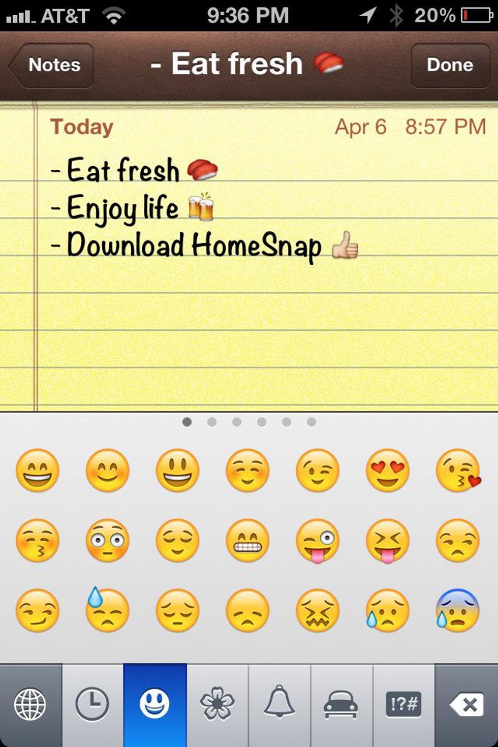 Sweet! Now you can use the Emoji keyboard whenever you want! Just click on the Globe key to get full access to smileys and other icons!