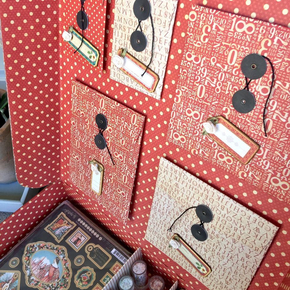 Make some pieces that serve to make separations inside the box. You can do them with cardboard and then cover them with Graphic 45 DIY Craft Paper.