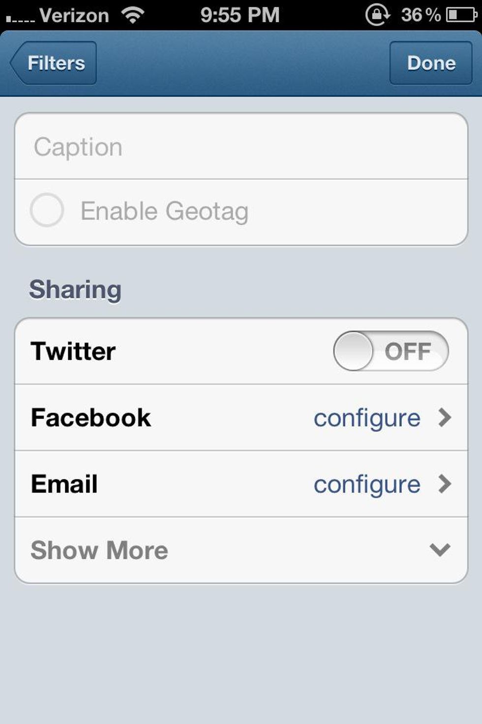 Hit the middle camera button to take you to this and snap a picture or choose from your gallery. Use the editing tools to change pictures.