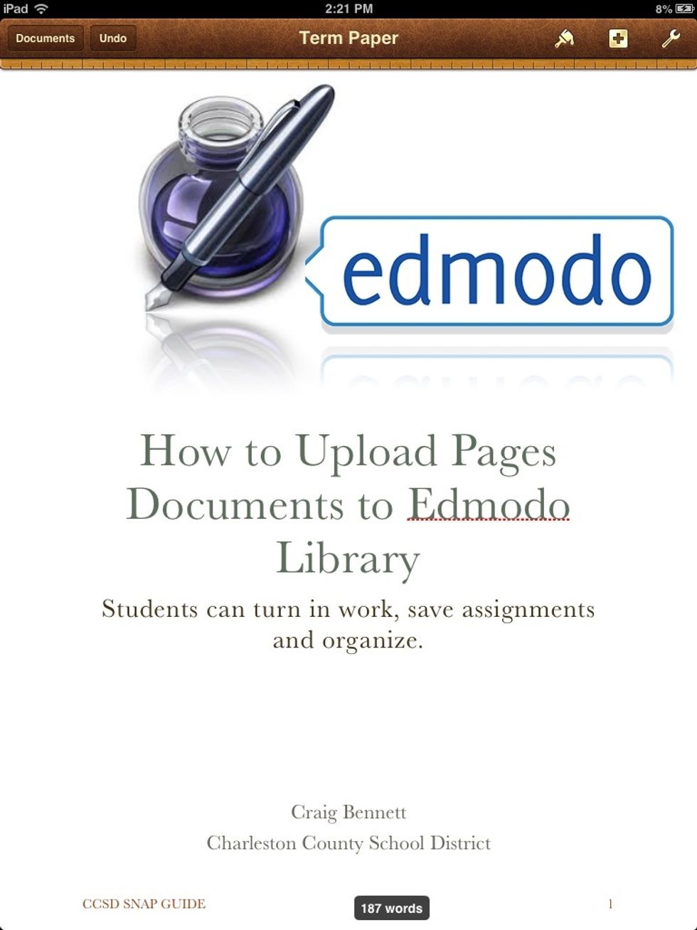 Teacher and students need to get organized with Edmodo. Use this great feature to upload Pages documents from iPad to Edmodo's library.