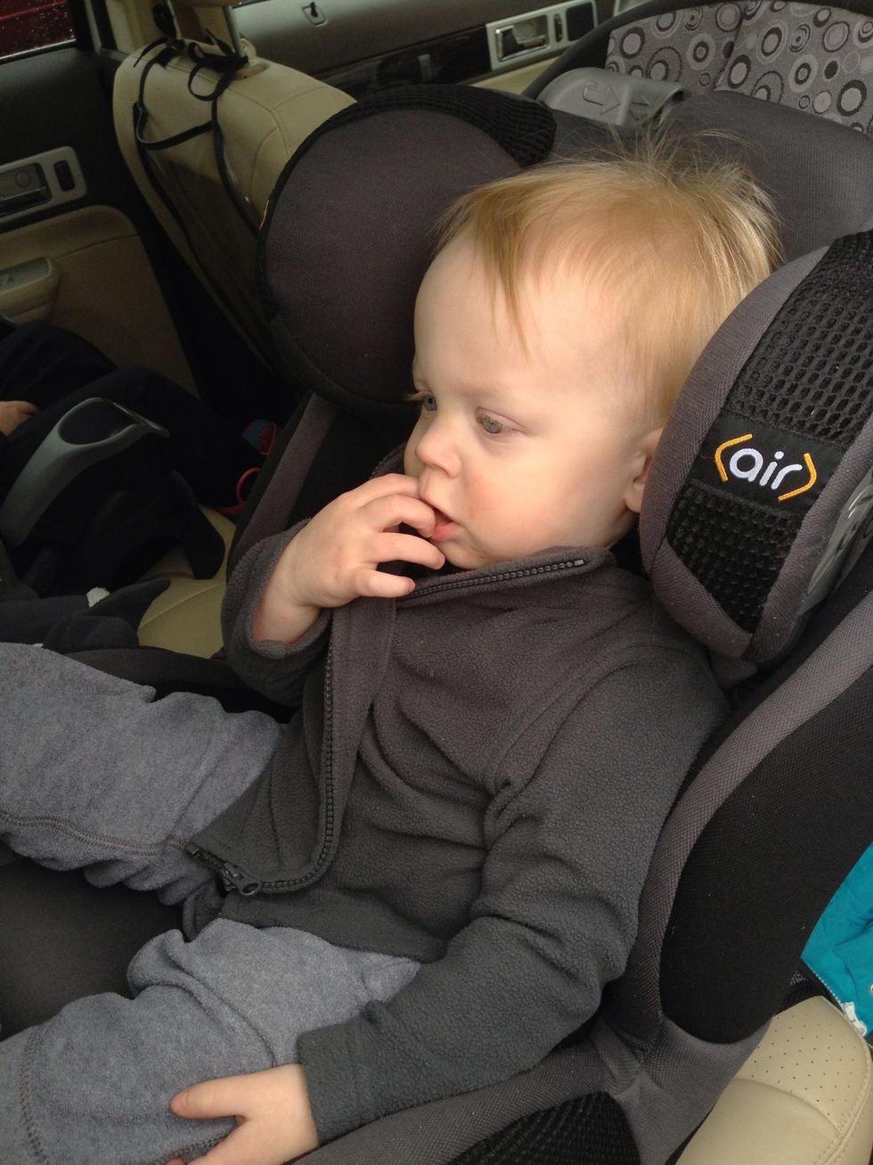 First and foremost, remove snow suit and/or winter jacket. It is never safe to have a child in a car seat with a puffy jacket. Instead, use a blanket or a thin fleece jacket or sweater.