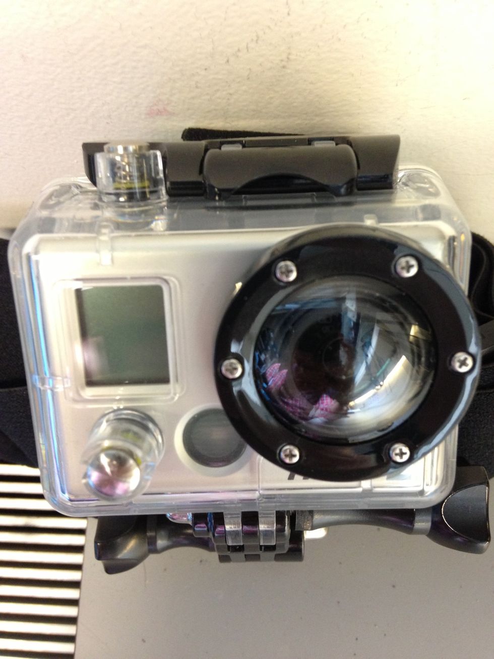 To attach the camera to a GoPro Head Strap mount, slide the two legs of the camera cover into the head strap plastic slots. You will have to twist out the screw beforehand if it is in the slots.