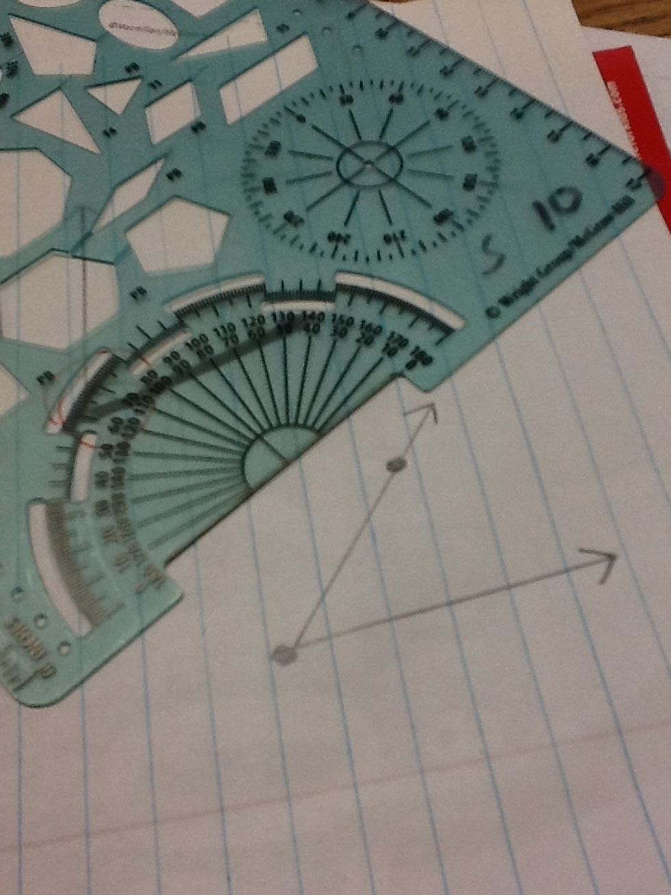 Decide which of the 0 degree to the 180 degree scale to use. If the angle is an acute use the smaller side, it the angle is an obtuse than use the greater side.