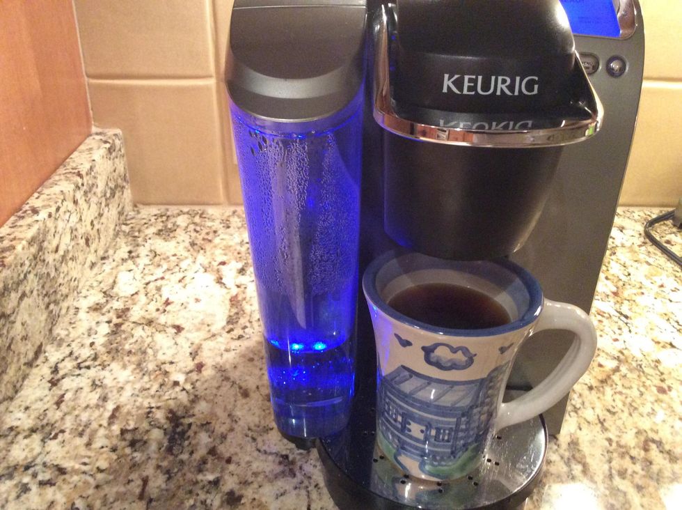 Grab a coffee mug and place it under the spout on the Keurig machine.