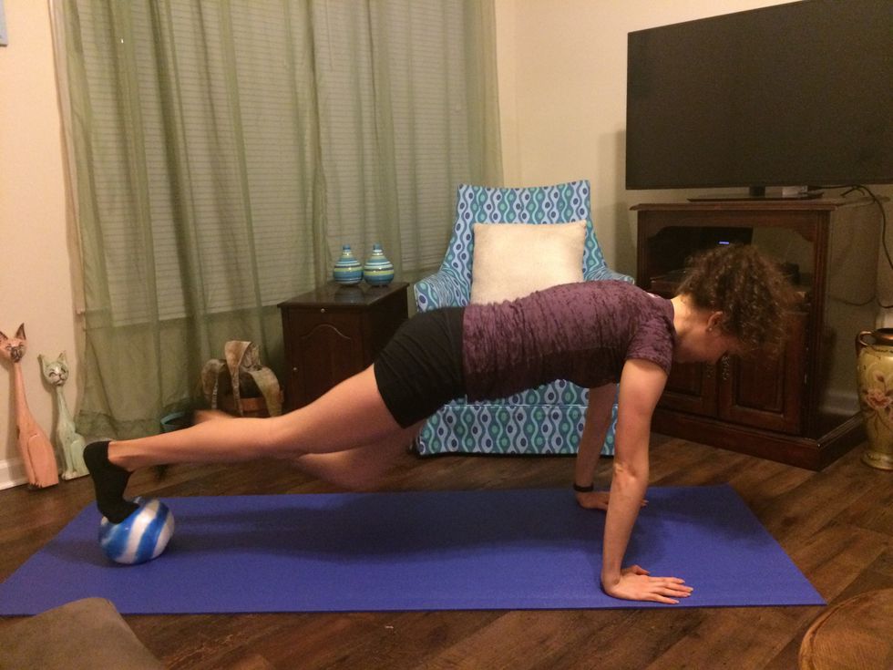 Mountain Climbers: Get in the plank position with your feet balanced on the ball.