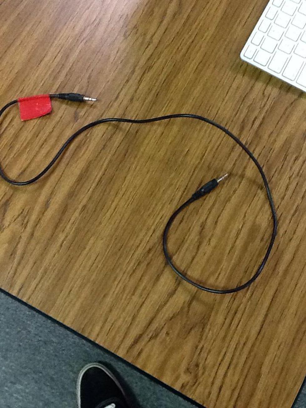 You plug it in the headphone input slot